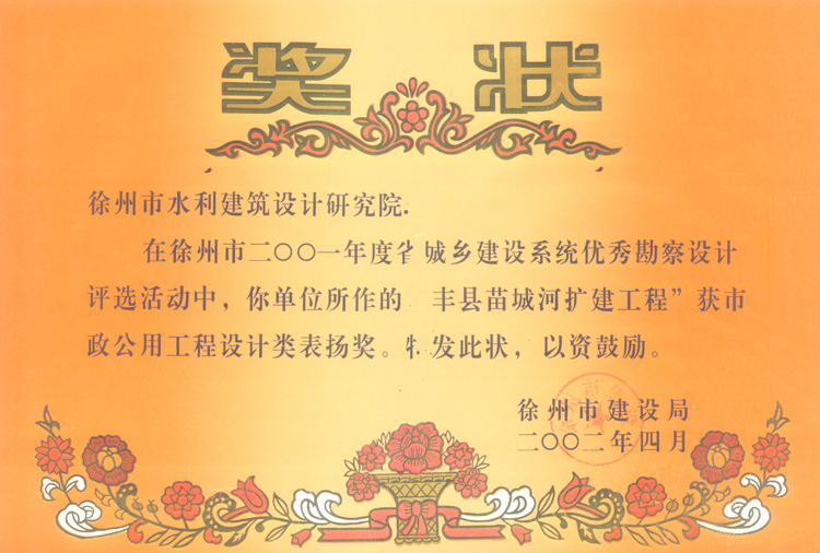 《豐縣苗城河擴建工程》市設計表揚獎(2002)