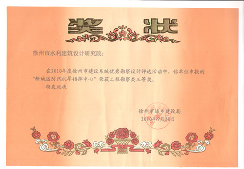 《新城區(qū)防汛抗旱指揮中心》市建設(shè)系統(tǒng)優(yōu)秀工程勘察三等獎
